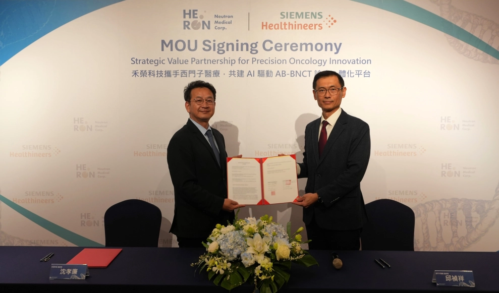 加速器硼中子捕獲治療(AB-BNCT)全球技術領先者禾榮科技股份有限公司(HERON Neutron Medical Corp.)今日宣布,與全球醫療影像領導品牌西門子醫療(SIEMENS Healthineers)正式簽署合作協議,雙方將建立策略性夥伴關係,結合AB-BNCT治療技術與最先進影像平台,共同打造以人工智慧驅動的「診療一體化(Theranostics)平台」,推動精準放射腫瘤醫學邁入全新里程碑。